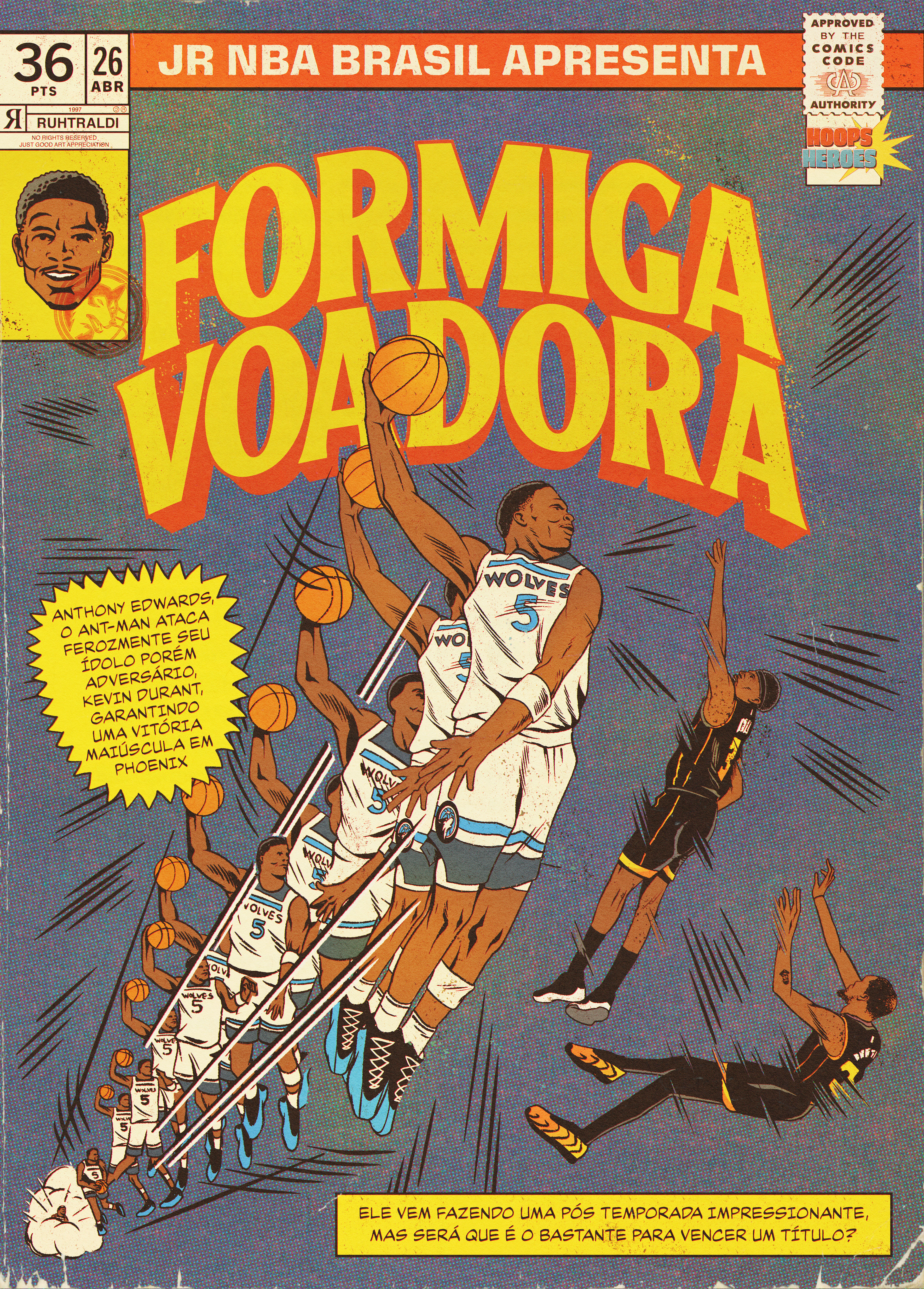 para ilustrar um dos lances mais marcantes dos Playoffs 2024 da NBA, e por votação dos seguidores (ainda bem), o escolhido foi essa enterrada monumental do Anthony Edwards em cima do Kevin Durant.
