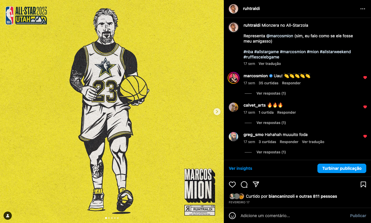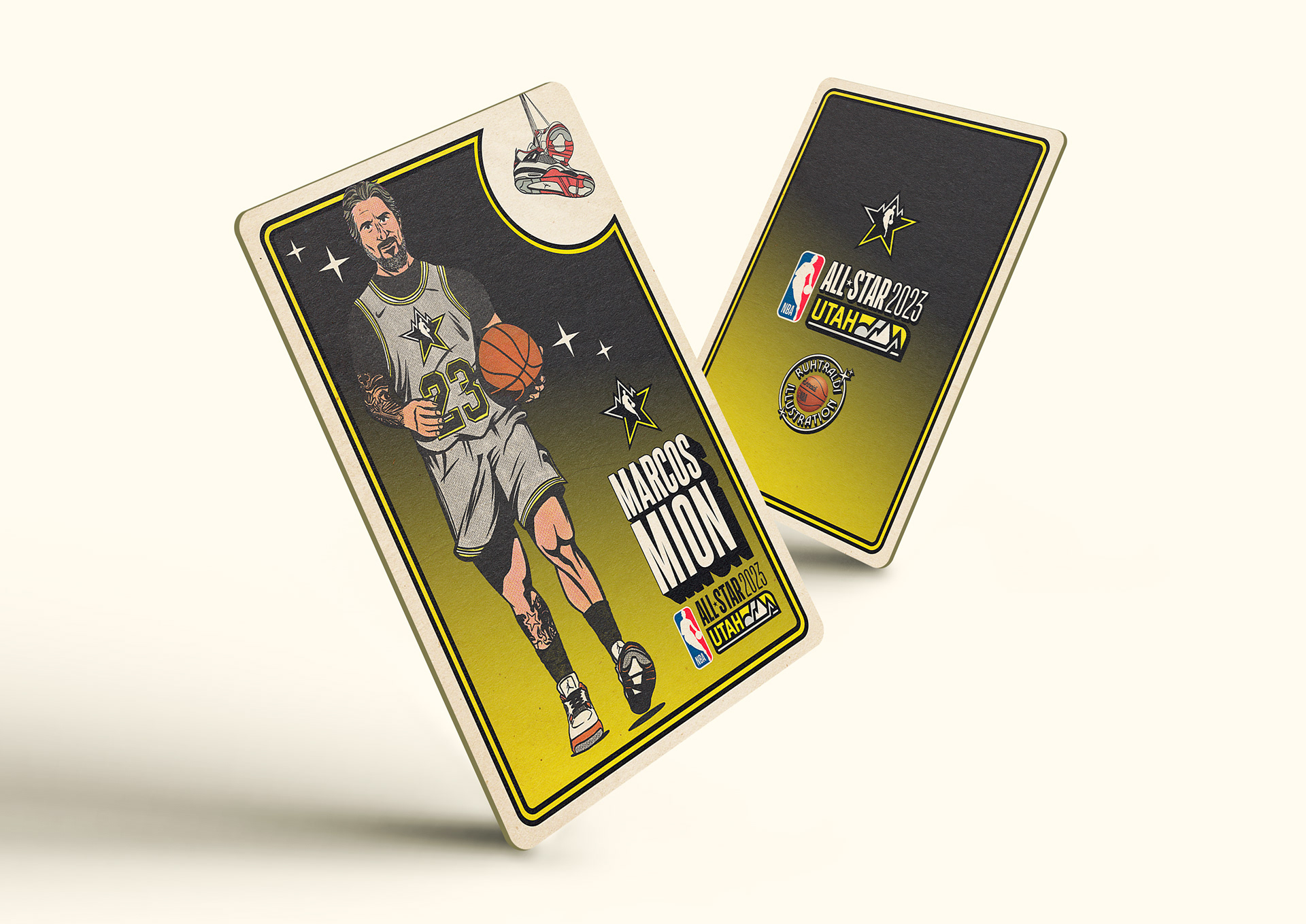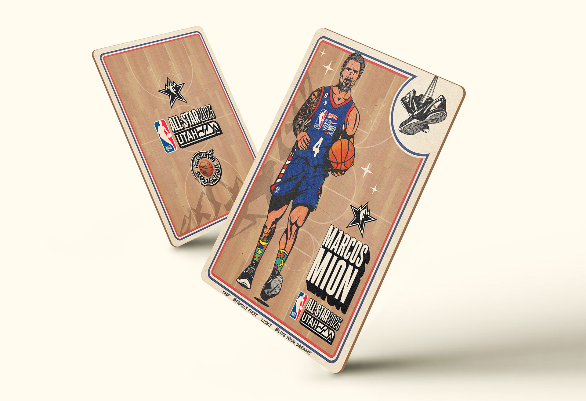 No All-Star Weekend da NBA desse ano, nosso querido Marcos Mion foi o primeiro brasileiro não jogador convidado pra jogar o Celebrity Game, então quis registrar esse momento com essa ilustra na estética dos cards antigos de basquete.