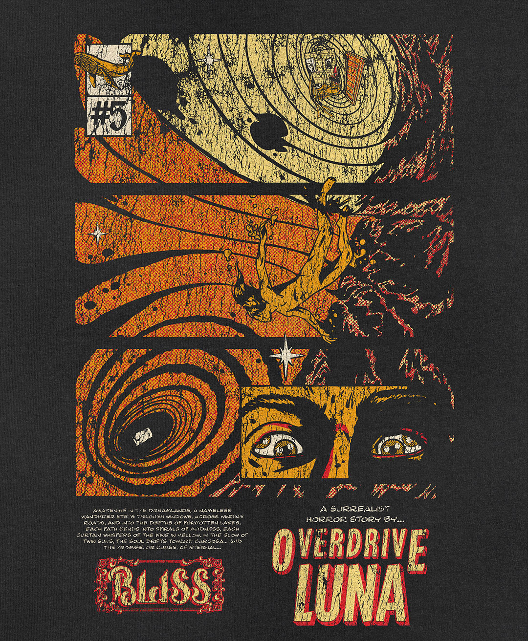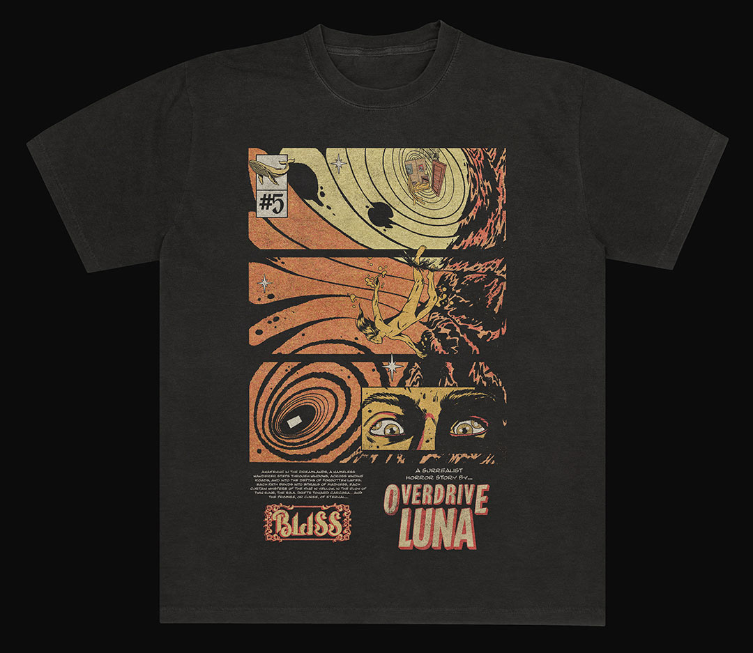 Nos últimos meses, tivemos a oportunidade de criar uma estampa para a overdriveluna, pro lançamento do primeiro álbum da banda, “BLISS”.
